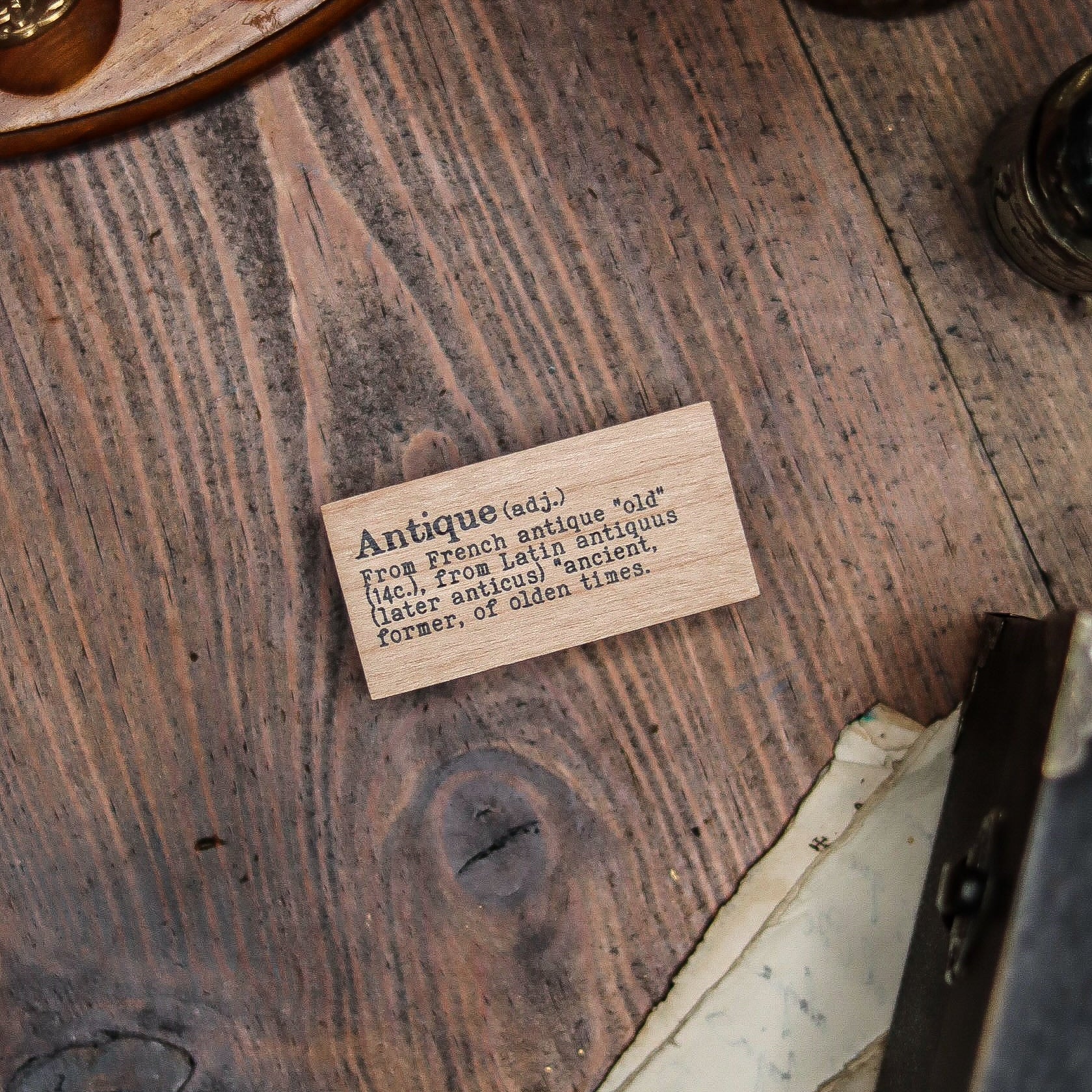 Sellos de caucho rojo montados en madera, compatibles con tintas permanentes, híbridas, gel, etc. Temática de diccionario clasificación "Library"; este set te permite crear composiciones individuales o en conjunto, ya sea para proyectos de journaling o scrapbooking.