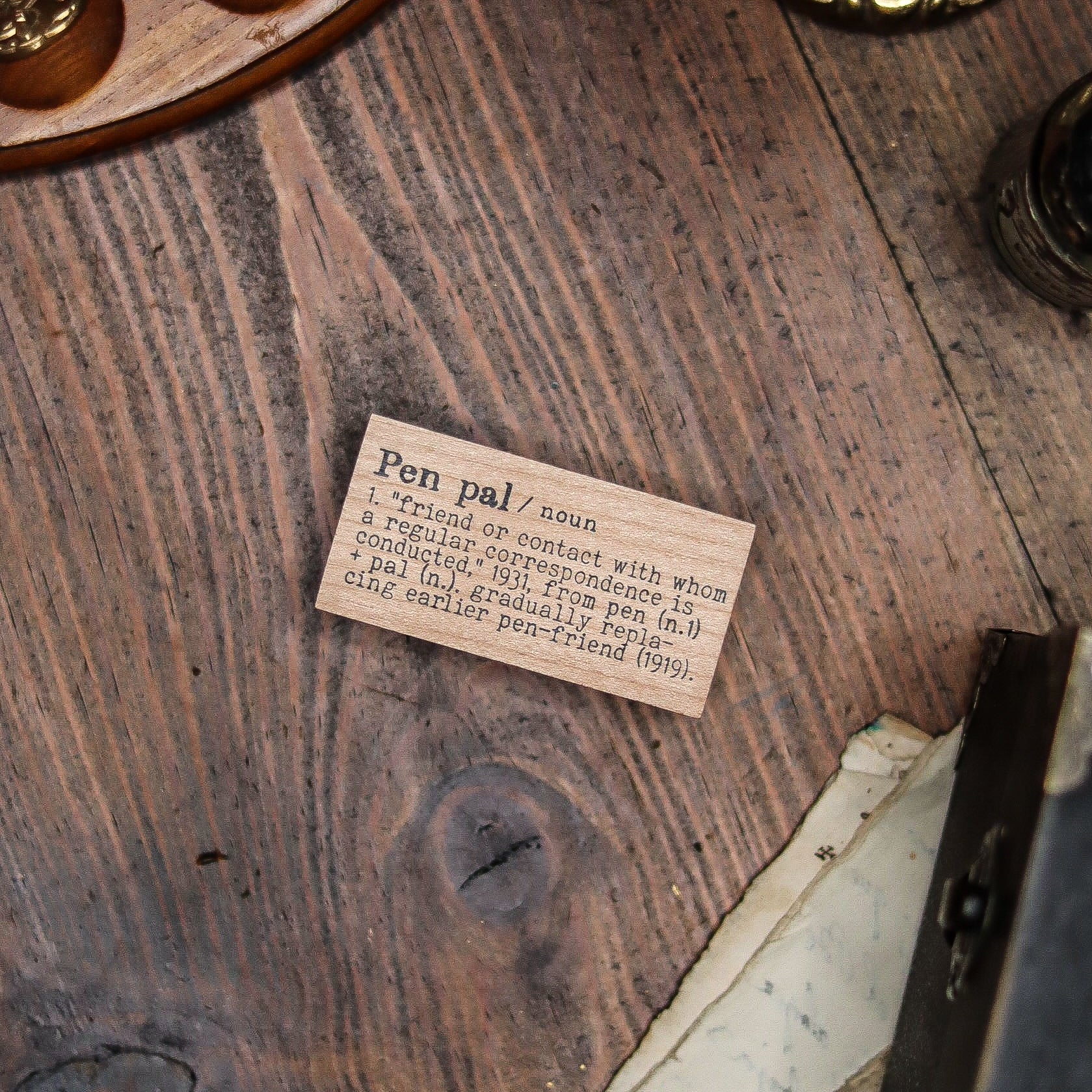 Sellos de caucho rojo montados en madera, compatibles con tintas permanentes, híbridas, gel, etc. Temática de diccionario clasificación "Letter"; este set te permite crear composiciones individuales o en conjunto, ya sea para proyectos de journaling o scrapbooking.